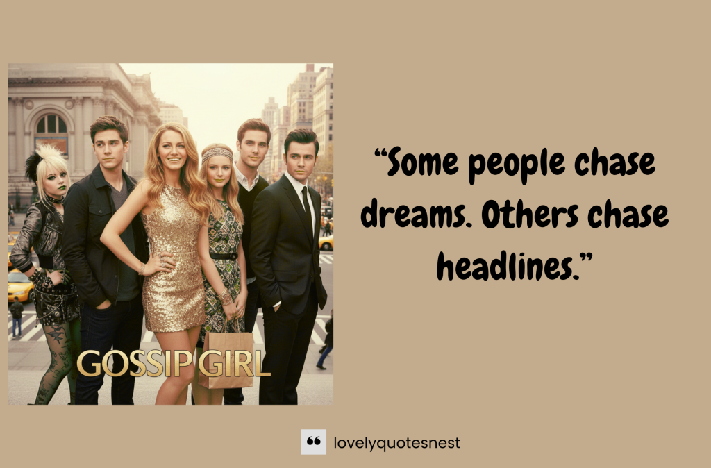 Gossip Girl follows the lives of teens on New York’s Upper East Side across multiple seasons. Each season brings new stories, challenges, and lessons for Serena, Blair, Dan, Nate, Chuck, and their friends. Gossip Girl quotes show life in this world.