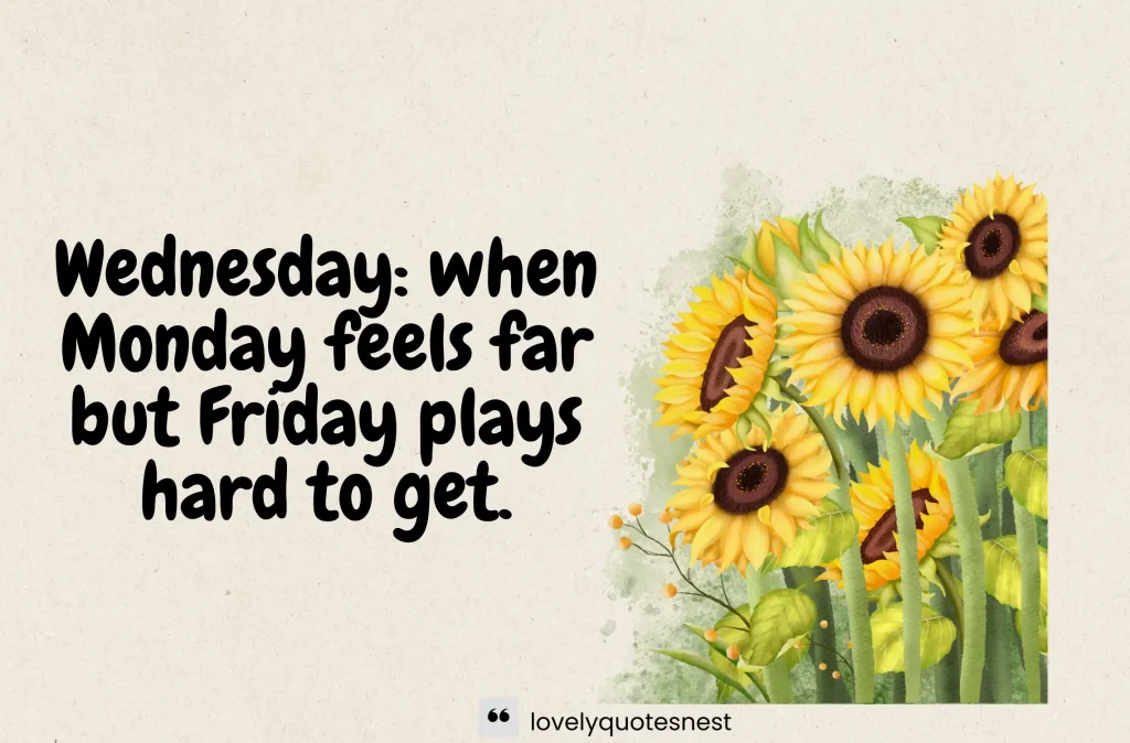 Wednesday quotes are fun, short lines about the middle of the week. They can be funny, happy, or motivational. People use them to feel better, share laughs, or get a little midweek energy boost.